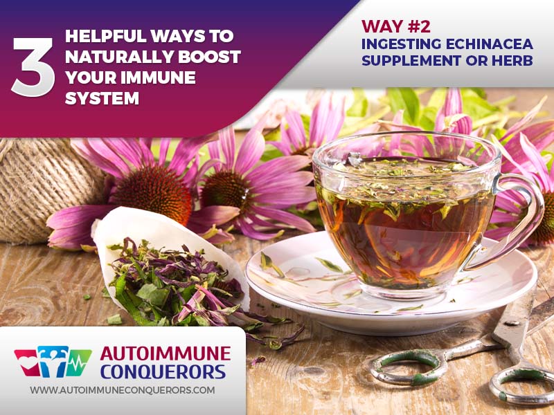 Echinacea has natural properties that help boost your immune system and help you fight off bacterial and viral infections more sufficiently than if you were not taking it. There are many ways to get more Echinacea, from taking supplements to using the actual herb. You can even make tea with it!