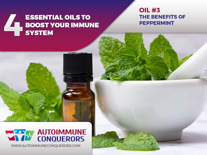 Peppermint is also great for your immune system. It helps detox your body of toxins. It can also help relieve stomach issues, like nausea and indigestion, and relieve headaches that you get when you have a cold or flu.