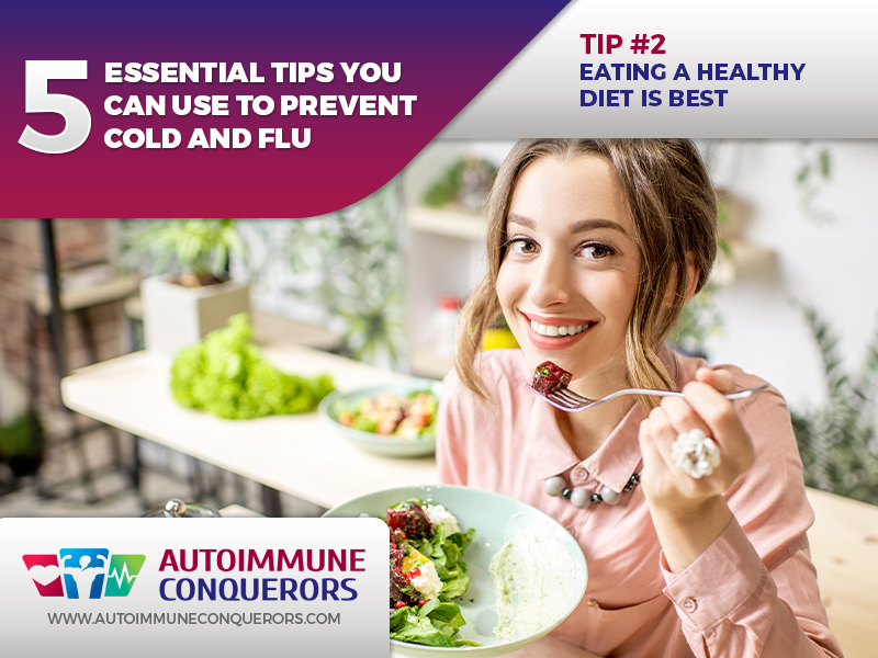 You also want to keep getting enough nutrients and vitamins into your system. In addition, eating healthy foods will help build a barrier against bacteria and viruses that lead to the cold and flu. You can do this by eating a healthy, well-balanced diet.